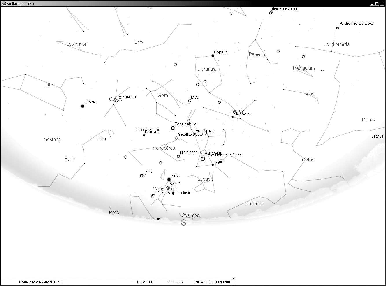 The sky (looking South) this month.